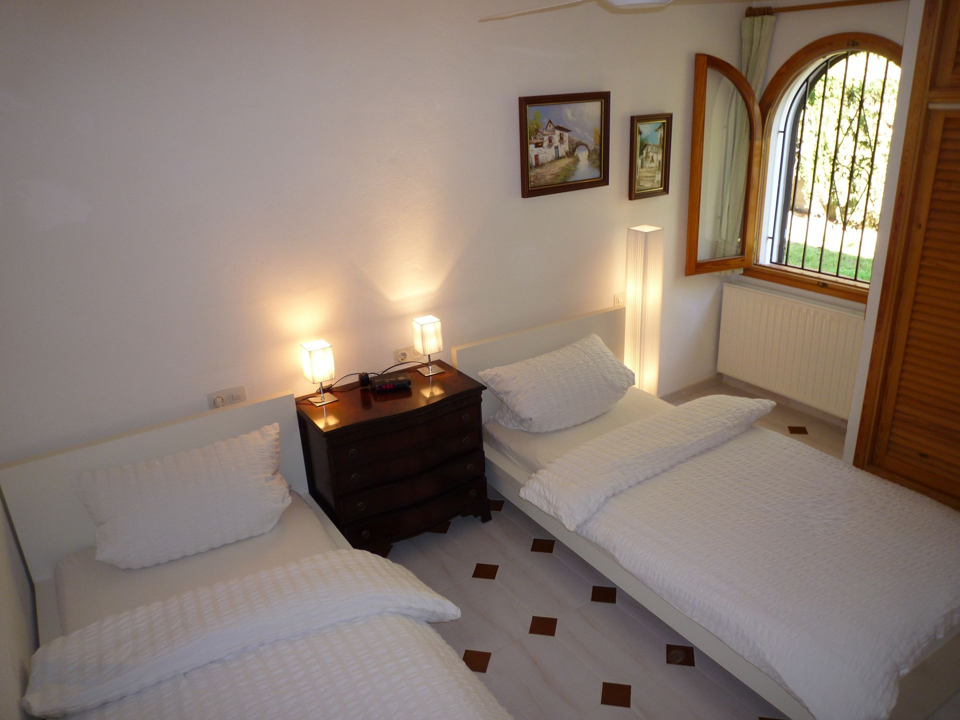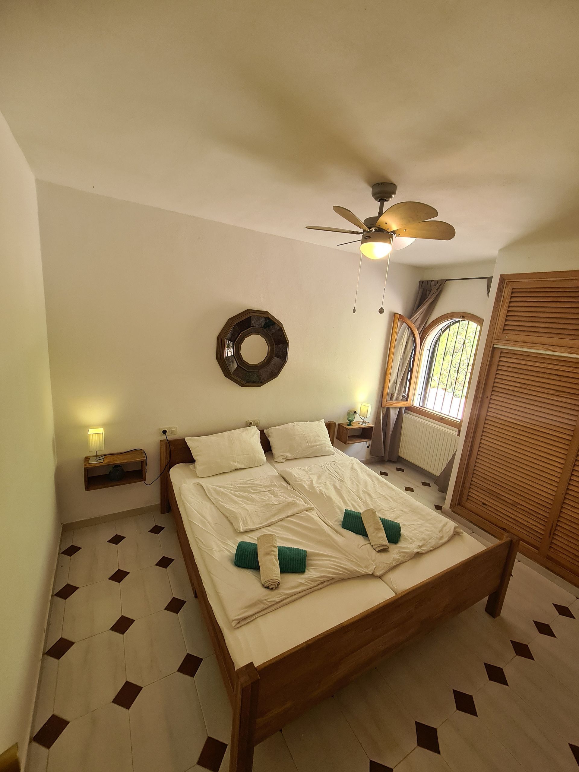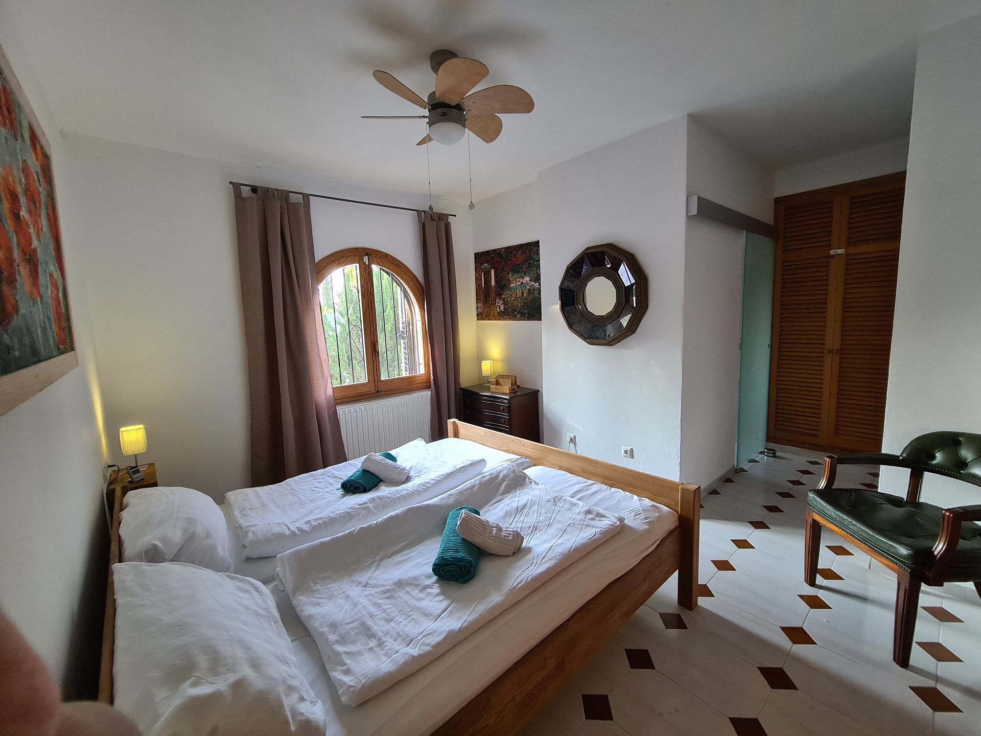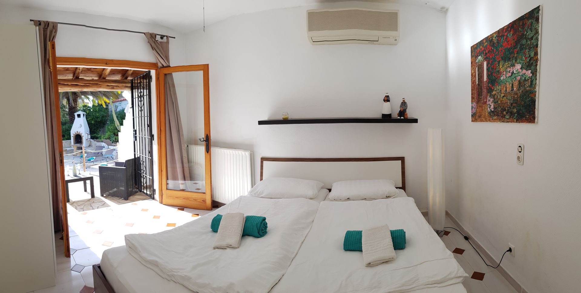 Ihr Traumurlaub erwartet Sie hier … Diese schöne und authentische Villa befindet sich im Nordosten von Ibiza in sehr ruhiger und exklusiver Lage. Auf einem kleinen Hügel gelegen, bietet sie einen schönen Blick ins Grüne. Sie liegt ca. 500 Meter von zwei Stränden entfernt, die sich gut zu Fuß erreichen assen und für Kinder sehr geeignet sind. Zwei Tennisplätze in der Anlage stehen Ihnen auch rund um die Uhr kostenfrei zur Verfügung. Komplett modernisiert und geschmackvoll eingerichtet verfügt diese Villa über 3 Schlafzimmer, zwei Bäder, ein Wohnzimmer über zwei Ebenen, Kamin, eine komplett ausgestattete Küche und unzählige Extras wie Klimaanlage, Ölheizung, Safe, riesieger Pool mit Gegenstromanlage, Massagedüsen und DSL- Internet / Wlan. Es gibt mehrere Terrassen sowie eine Dachterrasse. Die Ruhe, schöne Umgebung, die Pool-Landschaft mit dem BBQ-/Grillplatzbereich tragen zu einem entspannten Traumurlaub bei.